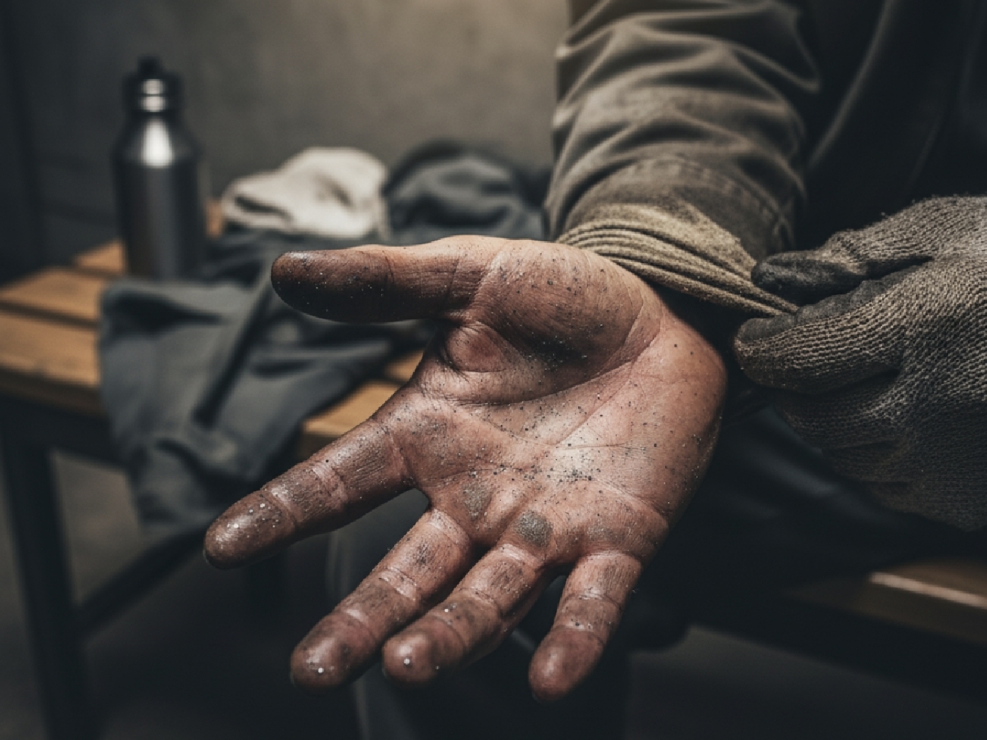 어깨는 굳고, 눈은 피곤하며, 손끝은 장갑 안에서 묵직하게 뭉쳐있다.